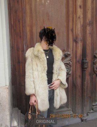 Vendo abrigo auténtico de piel de zorro (lomos) marca IVONE – “Alta Moda en Piel” (etiqueta en fotos, El Corte Inglés). Pelo muy bonito en tonos miel/natural con matices más oscuros, muy abrigado, con cuello amplio y caída elegante. - Cierre: ganchos/corchetes interiores de peletería. - Forro: satinado completo. -Medidas en plano: •Hombro a hombro: 55 cm •Sisa a sisa (pecho): 62 cm •Largo (cuello a bajo): 84 cm •Manga (hombro a puño): 60 cm 📌 Talla orientativa por medidas: L/XL