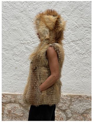 Elegante chaleco con acabado de piel de zorro. - Diseño sin mangas. - Cierre frontal con cremallera. - Forro interior . - tiene una pequeña rotura de piel pero si no lo anuncio, no se aprecia