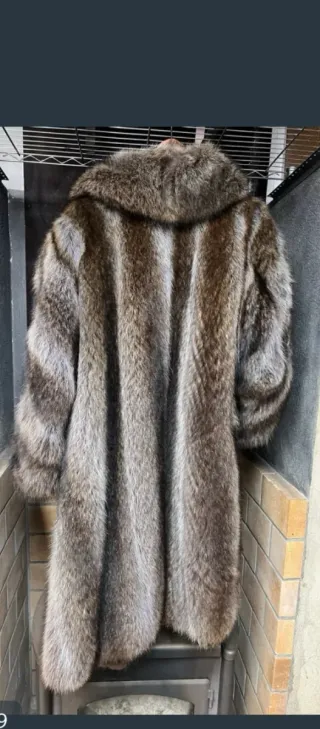 Elegante abrigo piel de zorro, en tonos marrón y gris. Perfecto para añadir un toque de sofisticación a tu vestuario. - Material: Piel de zorro auténtica. - Diseño: Abrigo largo con cuello amplio.
