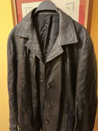 Elegante chaquetón de piel de vaca 100%. - Material exterior: Piel de vaca. - Forro interior suave y cálido. - Cierre de botones. - Bolsillos laterales. - Prenda de alta calidad , peso y piel natural que resite hasta el agua -Ideal para dias de frio en invierno Precio original 750 euros