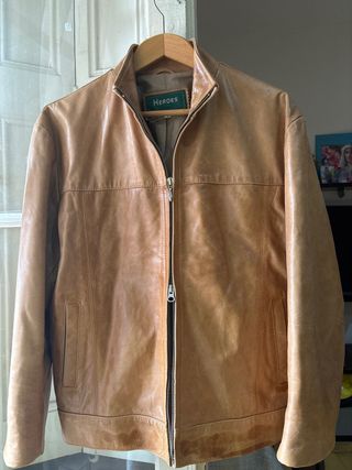 Chaqueta de piel de la marca Heroes en color marrón. Diseño clásico y atemporal. muy bien cuidada - Cuello alto. - Cierre de cremallera. - Bolsillos frontales