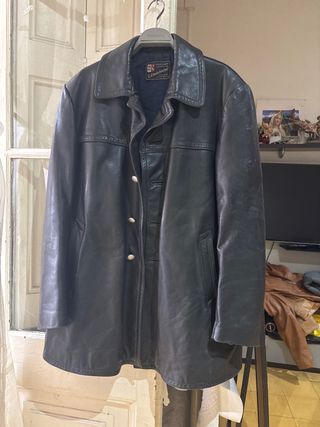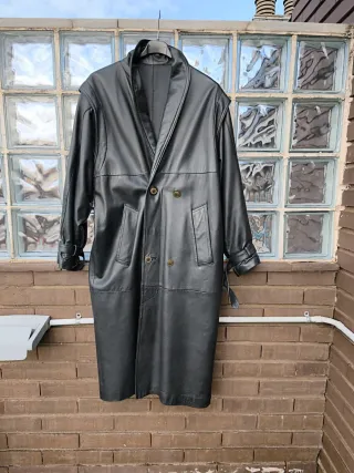 Abrigo largo vintage de piel, un clásico atemporal. - Diseño largo y elegante. - Cierre de botones. - Bolsillos frontales.