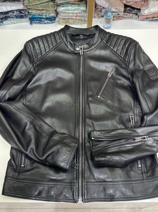 Chaqueta de piel estilo rockero, completamente nueva. Fue comprada como vestuario para una obra de teatro que se ha cancelado, SIN ESTRENAR, PRECIO ORIGINAL 524€ - Diseño de doble botonadura. - Cuello solapa. - Puños abotonados