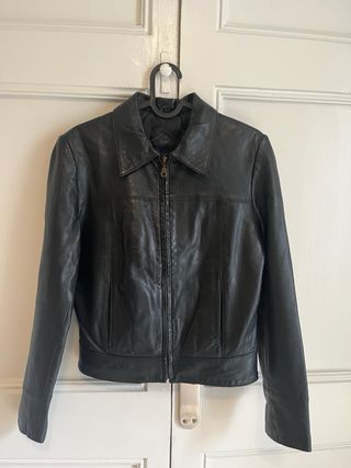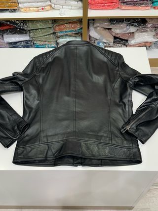 Chaqueta de piel /cuero con un diseño moderno y elegante. - Material: Piel - Color: Negro - Cierre de cremallera frontal - Bolsillos con cremallera En buen estado