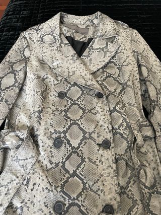 Gabardina de Zara con un llamativo estampado de animal print - Diseño de doble botonadura. - Cinturón para ajustar la cintura. - Cuello de solapa clásico.