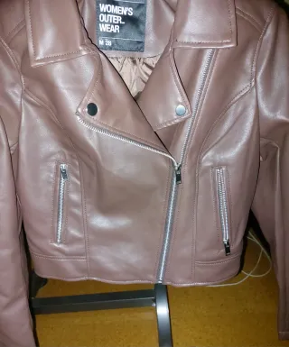 Chaqueta de piel de la marca Acsensi en talla L. Nueva. Cierre de cremallera, Bolsillos frontales. Y con detalle de bolsillo con botón en el pecho.