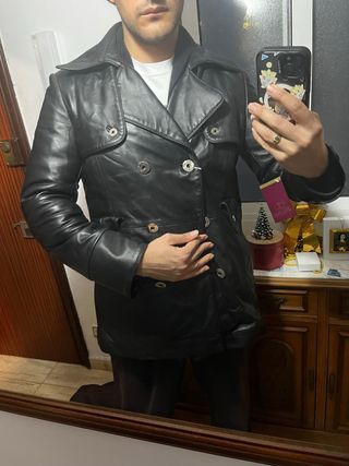 Chaqueta tipo aviador con exterior de piel auténtica y forro interior suave y cálido. Diseño clásico, resistente y muy abrigado — ideal para el invierno. Color marrón oscuro con interior beige, cuello y puños forrados. En muy buen estado, apenas usada. 🔸 Exterior de piel auténtica 🔸 Interior muy cálido y agradable al tacto 🔸 Cierre de cremallera frontal 🔸 Bolsillos laterales funcionales 🔸 Estilo atemporal tipo aviador Brazo 63cm, Hombros 53cm, Pecho 47cm, Largo 64 cm #chaquetadepiel #aviador #modahombre #chaquetainvierno #vintage #pielauténtica #estiloaviador #modaclasica #vinted