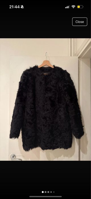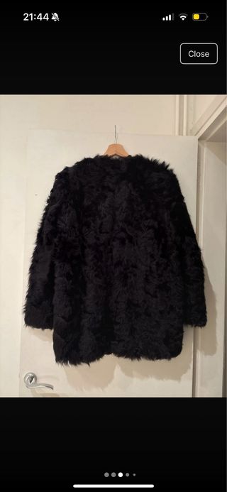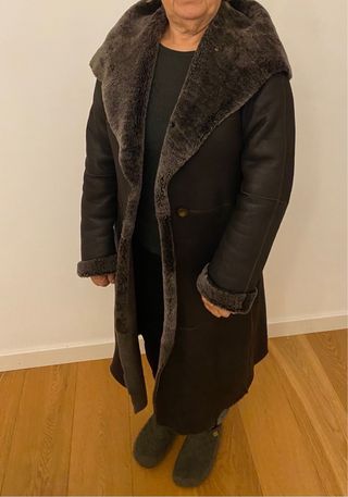 Abrigo de piel de cordero auténtica. Usado una sola vez - Material: Piel de cordero. - Color: Negro. - Talla: L (soy M y me va bien) - Tiene bolsillos - Se cierra con ganchos