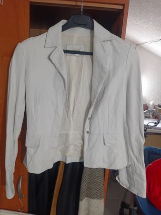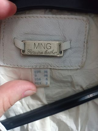 Preciosa chaqueta de cuero blanco de Mango, talla S (equivalente a 36 europea o 8 USA). Es una prenda elegante y delicada. - Talla pequeña, ideal para una silueta estilizada. - Cierre de botón. - Bolsillo frontal.