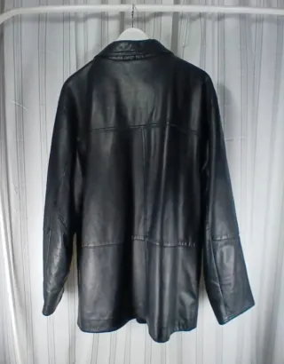 Chaqueta de piel vintage con un diseño clásico y elegante. - Cierre de cremallera frontal. - la talla no es una XXL , pongo medidas por si acaso: hombro a hombro 40. Axila axila 50 y 80 de largo - Bolsillos laterales.
