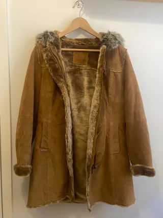 Abrigo de ante con un diseño clásico y elegante. Perfecto para añadir un toque de estilo a tu vestuario. - Material exterior: Piel de ante. - Cuello forrado de pelo sintético. - Los botones están reforzados y son los originales. - No tiene manchas ni rasguños. Todos los bolsillos están bien cosidos - Queda increíble puesto.