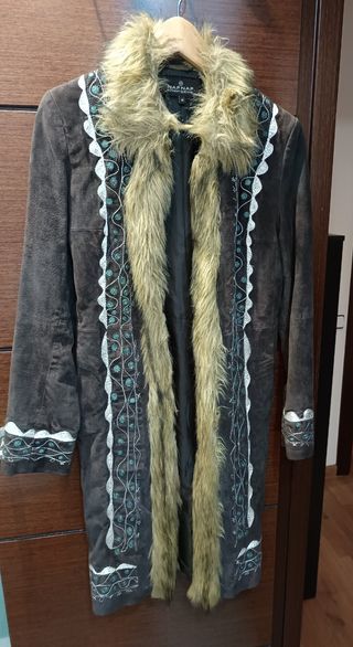 Abrigo Pepe Jeans . Es nuevo. Piel de Ante y pelo en cuello y mangas de cabra. Color gris, Tiene bordados hechos a mano. Talla L No se ha usado nunca. Posible envio
