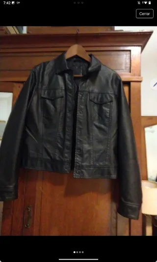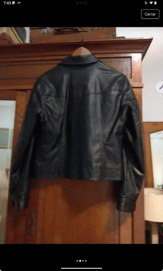 Chaqueta de estilo clásico con acabado en piel sintética. Vendo esta clásica chaqueta de piel negra, talla M. De corte moderno y robusto, es una prenda fundamental que nunca pasa de moda. Perfecta para darle un toque elegante y urbano a cualquier outfit. Color: Negro Talla: M Material: Piel Detalles de calidad en cremalleras y costuras Diseño versátil En muy buen estado Ideal para el día a día o para ocasiones especiales durante el otoño e invierno. Si te interesa, puedo enviarte más fotos de los detalles.