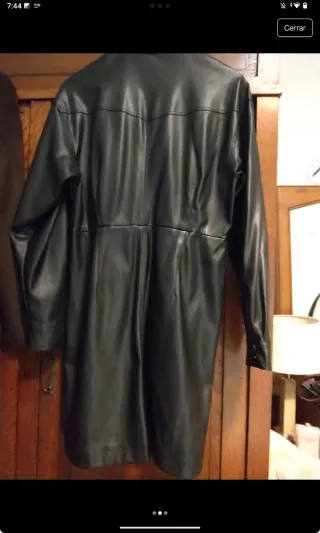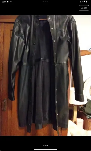 Elegante vestido largo de piel sintética. También se puede usar como abrigo - Diseño tipo camisero. - Cierre de botones.