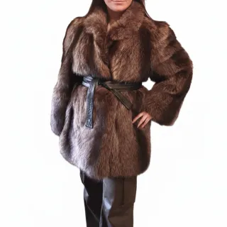Elegante abrigo de piel de zorro, perfecto para añadir un toque de distinción a tu vestuario. - Piel de zorro auténtica. - Diseño clásico con cuello. - Acabado multicolor y marrón. Marca "Conchita", tienda de peletería en León.