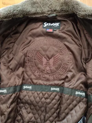 Cazadora de piel de la marca Redskins. - Diseño tipo bomber. - Cuello y puños de canalé. - Bolsillos con solapa en el pecho. - Bolsillos inferiores. - Cierre de cremallera. - Puede tener algunas marcas de uso