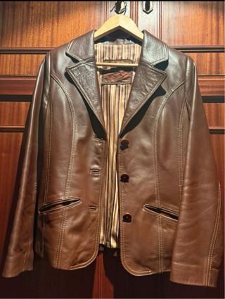 Cazadora de piel auténtica T.52 marrón Oportunidad