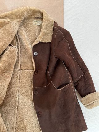 Chaquetón de piel ovina 100% de Massimo Dutti en tonos marrón y beige. Talla 11-12 años 146-158 cm En perfecto estado - Cierre de botones. - Bolsillos frontales. - Cuello de solapa con borreguito.