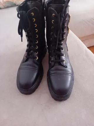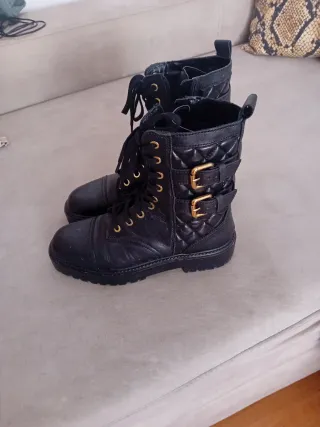 Botas de invierno de piel, perfectas para mantener tus pies abrigados y con estilo. - Cierre de cordones. - Detalle de hebillas doradas. - Suela gruesa y resistente.