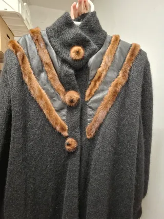 Abrigo largo punto y piel forrado
