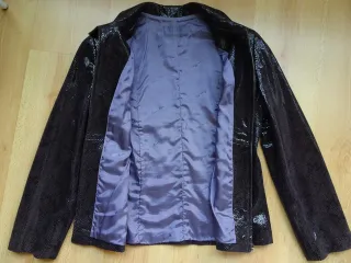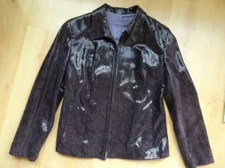 Chaqueta de estilo vintage con un llamativo diseño de piel de serpiente. Tiene un pequeño defecto en la parte de la espalda que no se aprecia nada. - Cuello redondo. - Cierre de cremallera frontal. - Mangas largas.