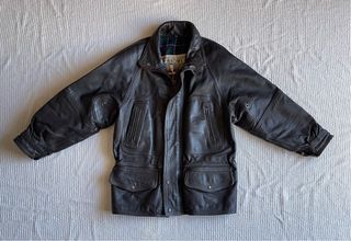Chaqueta de cuero auténtico GROWL – Marrón oscuro Talla 48 Chaqueta de cuero auténtico de la marca Growl, de gran calidad y fabricación robusta. Cuero grueso, flexible y bien conservado, con una pátina natural muy bonita. Interior con forro tartán, típico de chaquetas clásicas de cuero, que aporta carácter y comodidad. Cremalleras y botones metálicos originales. Estado general muy bueno para su uso y edad: – sin daños estructurales – desgaste normal acorde a una chaqueta de cuero auténtico Una pieza sólida, con presencia y estilo clásico, pensada para durar muchos años más.