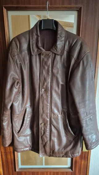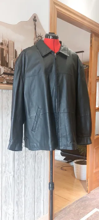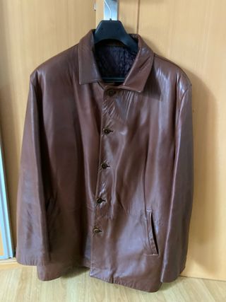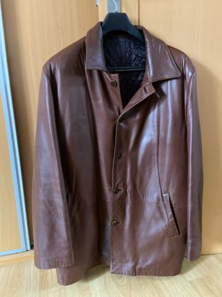 Chaquetón de piel de caballero forrado por dentro. En muy buen estado. En la prenda no aparece la talla pero equivale a una XXL. Adjunto medidas en las fotos. - Material exterior: Piel. - Forro interior de color burdeos. - Cierre de cremallera. - Bolsillos frontales.