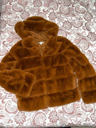 Abrigo Capucha Piel Sintética Zara T.42