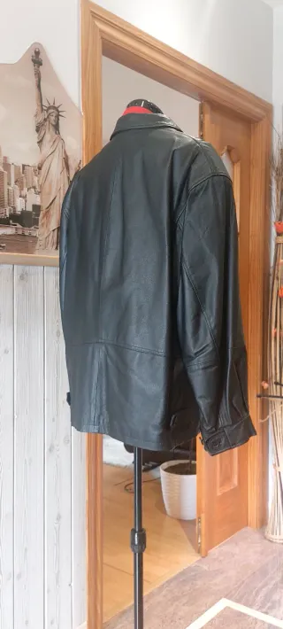 Chaqueta de piel auténtica con un diseño clásico y elegante. - Material: Piel genuina. - Cierre de cremallera frontal. - Bolsillos laterales. - Cuello camisero.Espalda 58 ,manga 61 Impecable