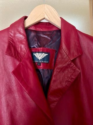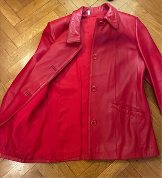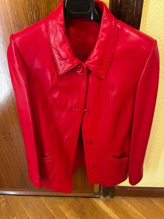 Chaqueta de piel roja Talla 42 Piel 100% de alta calidad y muy suave Fabricación Española en HERVÁS PIEL FORRADA PRÁCTICAMENTE SIN USO