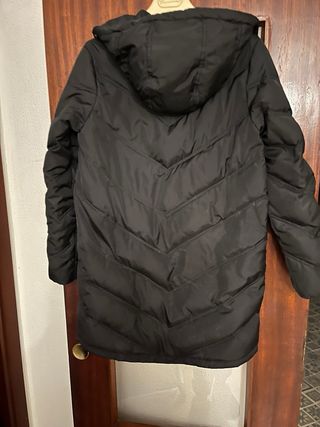 Está completamente nuevo. Se ha usado una vez. Abriga bastante porque es gordito. Tiene pelos en la zona del cuello y capucha dentro de una cremallera. Es de Easy Wear del Corte Inglés. El precio original son 95€ Es Talla S, pero también puede valer para M.