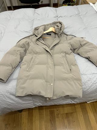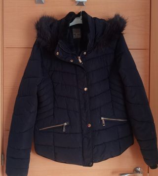 Abrigo plumífero de Zara , color azul marino , relleno 70% plumón de pato gris , usado dos veces . No hago envíos pero te lo puedo acercar si vives en Madrid . Para más información escríbeme .