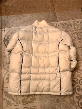 Chaqueta acolchada de la marca Ecoalf, con un diseño moderno y versátil. - Combinación de colores blanco roto beige y negro. - Cuello redondo. - Cierre de cremallera frontal. - Mangas largas. - Parche con logo en la manga. acolchada plumas ligero tala XL pero talla pequeño #ecoalf #plumas #chaqueta #abrigo