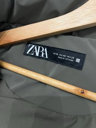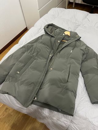 Plumas color verde oscuro de Zara. Talla XL. Está como nuevo, es muy calentito, tiene forro de pelo por dentro. El gorro tiene cremallera para quitarlo.