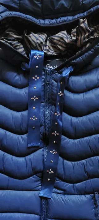 Cazadora de plumas azul.