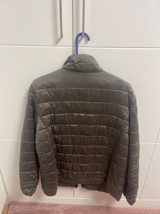 Plumas, plumífero Talla M Exterior polipiel verde clarito El plumas es sin capucha Tiene 2 gomitas internas en la cintura para ajustar al gusto si se quiere.