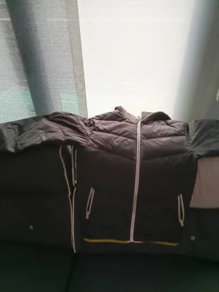 Dos abrigos de plumas negros de la marca Wed'ze. A 15 cada uno. Son muy calentitos y aún les queda mucho por dar. - Diseño acolchado. - Capucha integrada. Lo que se blanco son las plumas del abrigo. Que algunas al ser muy pequeñas se salen.