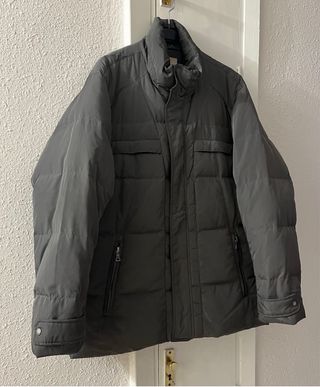 Chaqueta plumas de la marca Hugo Boss. Como nueva, apenas ha sido usada una o dos veces. - Diseño acolchado. - Cuello redondo. - Cierre de cremallera frontal. - Bolsillo lateral con botón. - Detalle de logo en manga.