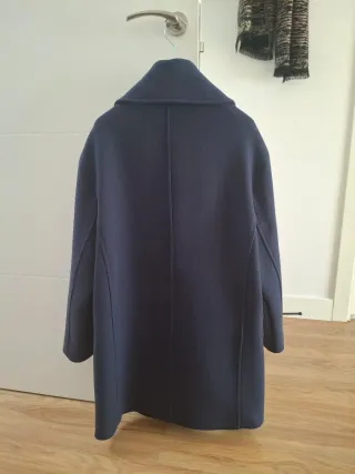 Elegante abrigo de señora, confeccionado con lana virgen Manteco. Modelo oversize muy favorecedor. - Diseño de doble botonadura. - Bolsillos frontales. - Cuello solapa. - Abriga mucho porque es lana virgen. - No hace bolas, garantizado, porque es lana MANTECO. - Es talla XS, pero con diseño oversize, es decir, que talla grande. - Usado muy pocas veces.