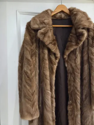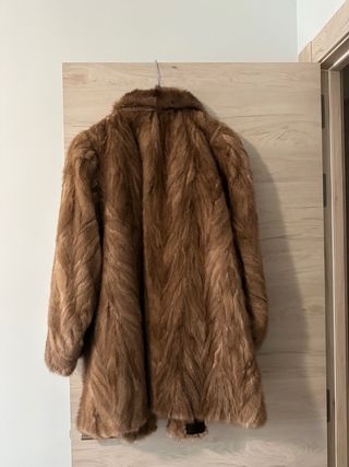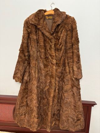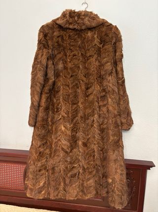 Elegante abrigo vintage de imitación visón. Un clásico atemporal que añade un toque sofisticado a cualquier atuendo. Es de los años 50estilo visón creo que es sintético precioso. - Diseño largo y lujoso. - Cierre frontal con botones. - Cuello amplio y envolvente.yo uso una 42 y me viene perfecto.