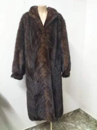 Elegante abrigo largo tipo visón. Su confección presenta un patrón en espiga que le da un toque distintivo. - Diseño largo. - Patrón en espiga. En perfectas condiciones