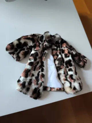 Abrigo de pelo sintético con estampado de leopardo, diseñado para la muñeca Nancy. Pequeño descosido de 1 cm como se ve en última foto - Estilo vintage de los años 70. - Forro interior blanco.
