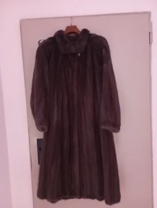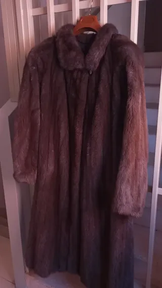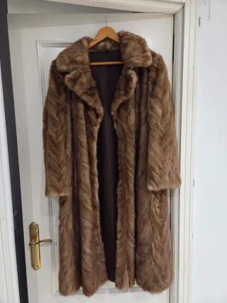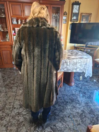 Abrigo largo de lomos de visón sintético. - Material: Visón sintético. - Diseño: Liso. - Lo original del abrigo es el color que tiene, no es en típico marrón, es como un poco grisáceo con reflejos verdosos, muy original. - Alta calidad - Puedo estudiar ofertas