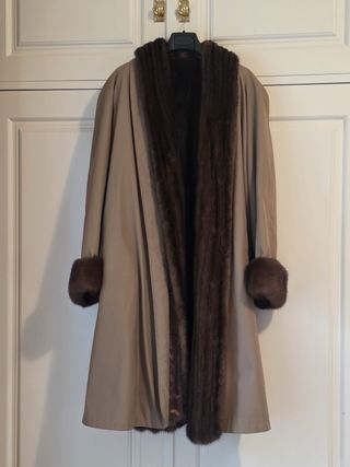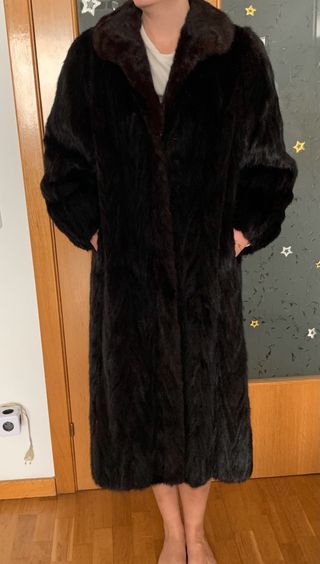 Abrigo de estilo visón con un diseño elegante. Con un cuello que se puede llevar abierto y que queda envolvente al llevarlo cerrado. El abrigo se cierra mediante tres corchetes en la parte delantera y tiene también tres bolsillos, dos exteriores (uno a cada lado) y uno interior. Entrega en mano, Barcelona y alrededores. Precio Negociable.
