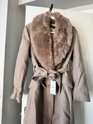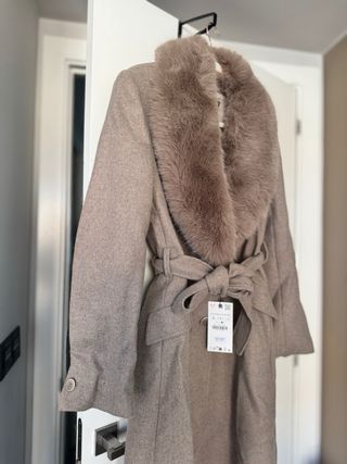 Elegante abrigo largo de Zara, perfecto para añadir un toque sofisticado a tu vestuario. - Diseño con solapas y cinturón para ajustar a la cintura. - Confeccionado en una mezcla de lana. - Detalle de pelo sintético en el cuello que se puede retirar