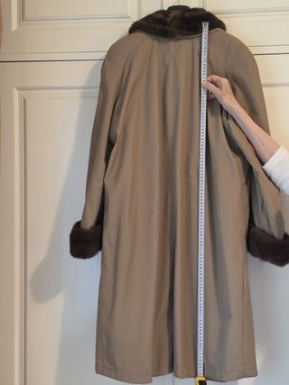 Elegante gabardina con detalles de visón sintético. - Cuello y puños con acabado de visón sintético. - Diseño clásico y atemporal. con forro de nutría sintética Es desmontable para usarla también en primavera