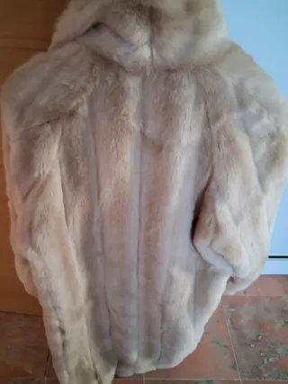 Elegante abrigo de imitación visón en color beige, comprado en Lafayette en Paris. Talla 42/44 Largo a nivel de la rodilla Utilizado 2 veces, como nuevo. A recoger en Alhaurín de la Torre - Diseño de imitación visón. - Color beige versátil. - Adquirido en Lafayette.
