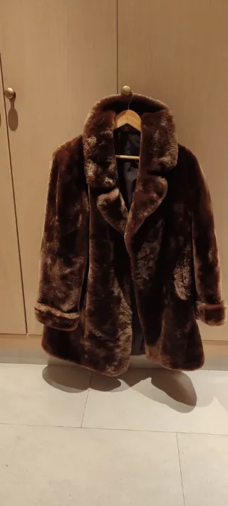 Oportunidad- limpieza del armario Elegante abrigo de visón sintético ( no es natural) en tono marrón. Perfecto para añadir un toque de sofisticación a cualquier atuendo. Muy calentito. - Cierre con botones. - Cuello alto. - Mangas largas. Poco uso, perfecto estado. Es lavable en la lavadora, baja temperatura y bajas revoluciones del centrifugado.
