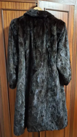 Elegante abrigo de visón sintético. - Diseño clásico y atemporal. - Tacto suave y agradable. - Ideal para ocasiones especiales o para añadir un toque de lujo al día a día. Se llevó en su día a la tintorería y se guardó tal cual. Medidas de largo desde el hombro noventa y seis centímetros aproximadamente medida de sisa abrochado unos cuarenta y seis centímetros. Puño con dos ojales y posibilidad de poner dos botones al gusto del que quiera ponérselos. Cruzado. Con bolsillos. Tengo otro abrigo similar en mi perfil. Con posibilidad de probarselo