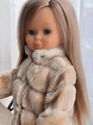 Conjunto Original Nancy Famosa (Abrigo Visón y Vestido Diseñador) El icónico vestido negro de la colección "Grandes Diseñadores" de Ion Fiz. Con cuerpo de tul y falda de "plumas" (peluche) y detalles de flores blancas en la cintura. Abrigo Original "Visón": El clásico abrigo de pelo sintético con etiqueta original de Famosa, un tesoro de los años 70 Sandalias a juego: Incluye las sandalias originales que complementan perfectamente el look MUÑECA NO INCLUIDA